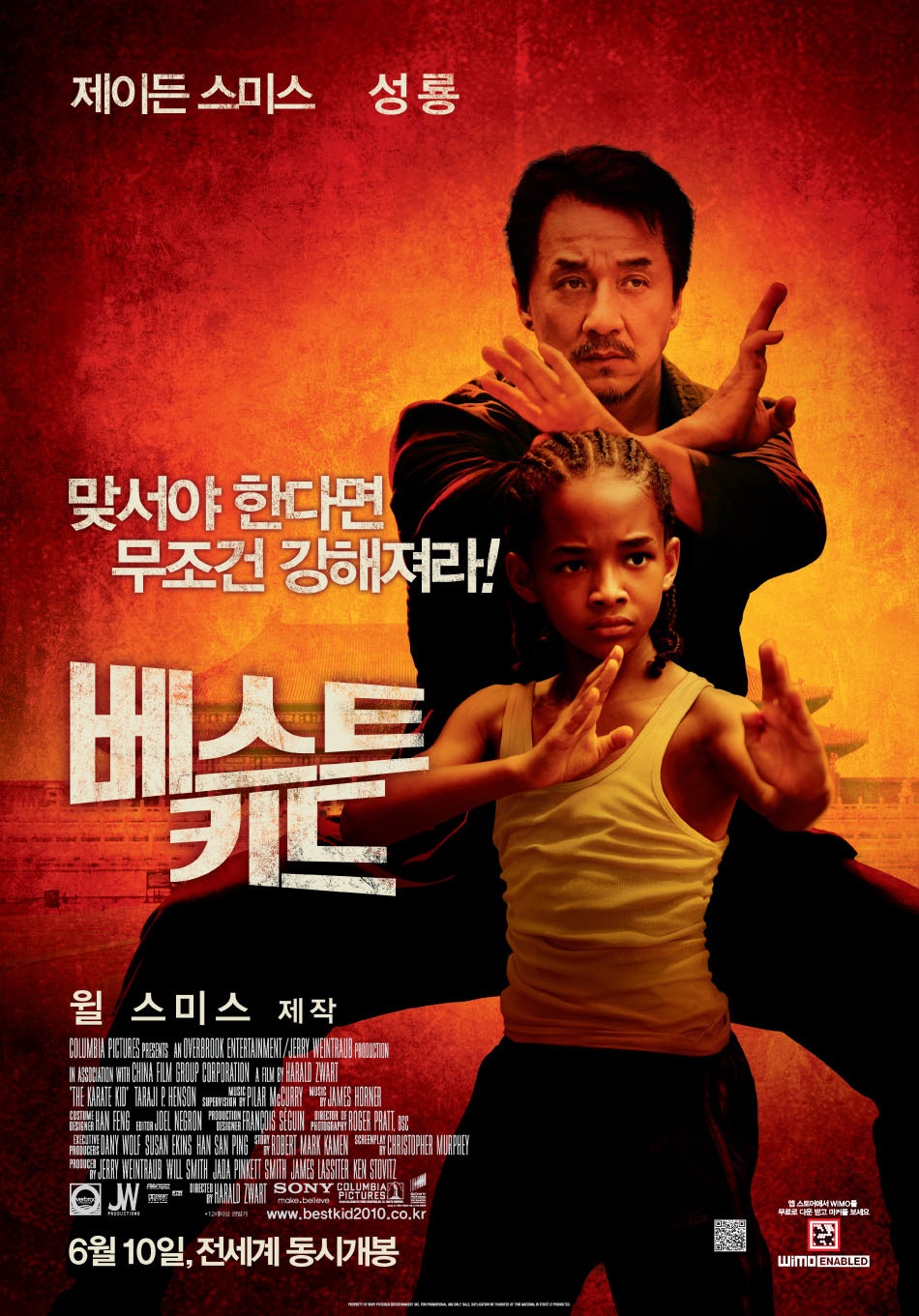 성룡과 제이든 스미스 주연의 베스트 키드는 2010년 개봉된 영화입니다. 1984년에 제작된 동일 제목의 리메이크 작품입니다. 배경은 중국이며 원작에 비해 훨씬 무술 장면이 훌륭하다고 합니다. 네덜란드 출신의 해럴드 즈워트가 감독을 맡았습니다. 드레 역은 제이든 스미스가 맡았습니다. 제이든 스미스는 미국의 배우 겸 가수이며 윌 스미스의 아들로도 유명합니다. 윌 스미스는 베스트 키드의 제작자로 참여하였습니다. 아버지와 함께 연기했던 행복을 찾아서가 큰 흥행을 끌며 연기력을 인정받았습니다. 미스터 한 역은 성룡이 연기하였습니다. 성룡은 1954년생으로 홍콩 출신의 액션배우 및 감독입니다. 액션배우이지만 연기력이 출중한 것으로 유명합니다. 드레의 엄마 역으로는 타라지 헨슨이 연기하였습니다. 1970년 미국 출생의 배우입니다. 비열한 스승 리 역은 중국 출신 배우 우영광이 연기하였습니다.
